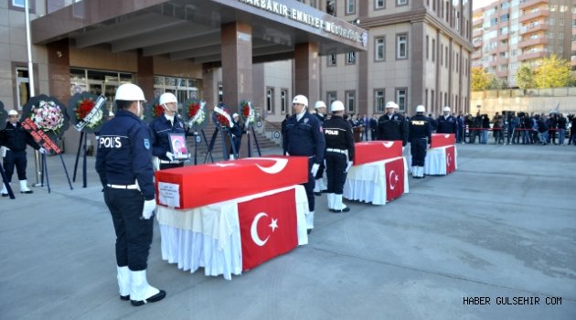 Şehit polis memurlarına ilk tören Diyarbakır il Emniyet müdürlüğü önünde yapıldı.