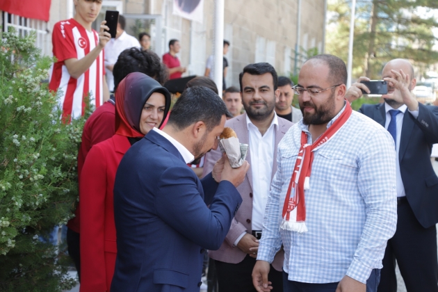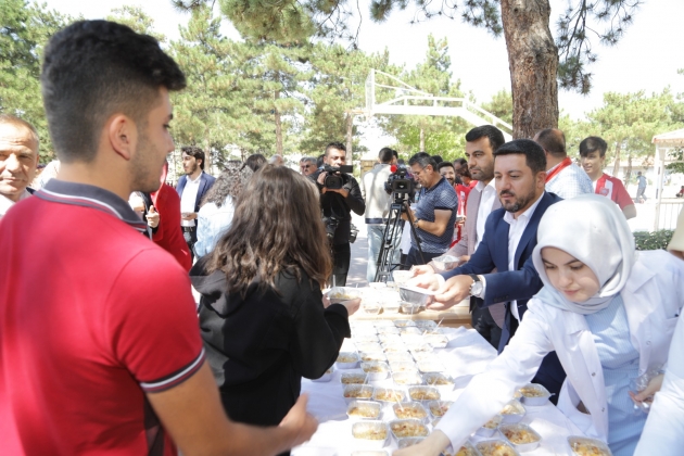 Nevşehir Belediye Başkanı Rasim Arı’da, Türk toplumu olarak nimete karşı şükretmeyi bilen bir kültürün evlatları olduklarını söyledi. Arı, “Nevşehir Anadolu Lisesi gerçekten şehrimizin köklü liselerinden, değerli liselerinden ve ülkemizin farklı kademelerinde iyi noktalara mezunlarının geldiği bir lisedir. İlk geldiğimiz günden beri özellikle hassasiyet gösterdiğim, önem verdiğim bir lise. Böyle bir lisede hem Muharrem ayı vesilesiyle aşure günü hem de Nevşehir Belediyespor taraftar gurubumuz Meterisliler’in organizasyonu ve Nevşehir Belediyemizin katkılarıyla ‘Nimete Şükür Günü’ düzenledik. Gerçekten duygulandım, gerçekten çok gururlandım, duygusal bir ortam oldu. Çünkü biz nimete, milli manevi değerlere saygılı olan bir toplumuz. Nevşehir’in her bir ferdi nimetine şükretmeyi bilen milli ve manevi değerlerine saygılı son derece saygılı insanlardır. Bu şehrin evlatları olarak bugün bir daha gurur duydum. Bugün okula yeni başlayan kardeşlerimize simit ikram ettik, nimete şükrettik” şeklinde konuştu.