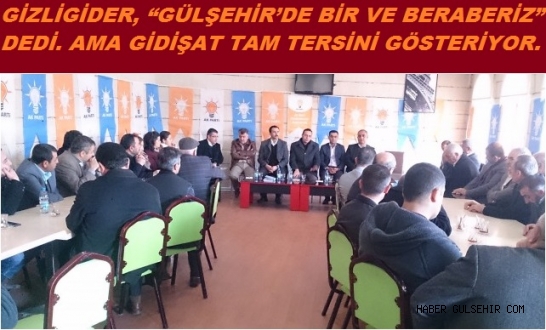 GİZLİGİDER; birlik ve beraberlik mesajı ile toplantıya katıldı, fakat halkın tepkileri, anket'ler ve bunun üzerine yeni Akparti Gülşehir teşkilatına tepkiler eklenince ok işaretinin aşagıları gösterdiği, Gülşehir'de Akparti 2.nci bir hezimetemi hazırlanıyor sorusunu akıllara getirdi.