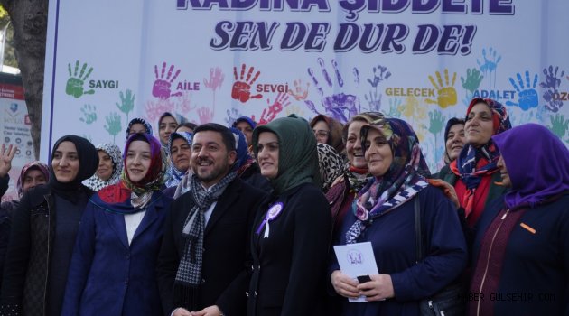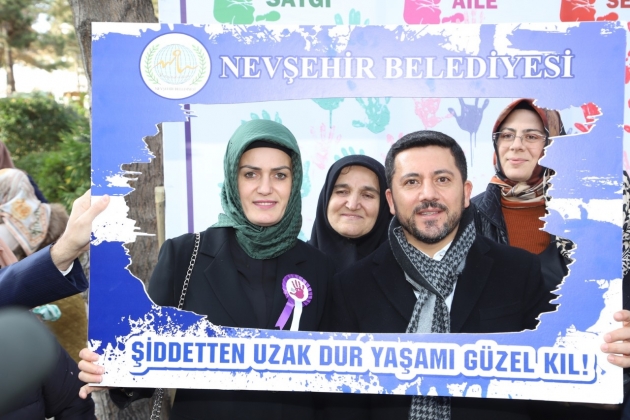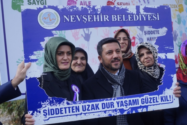 Yapılan bilgilendirmenin ardından Belediye Başkanı Rasim Arı, eşi Melek Arı, Belediye Başkan Yardımcıları, sivil toplum örgütü temsilcileri ve Nevşehirli kadınlar hep birlikte, Kadın ve Aile Hizmetleri Müdürlüğü tarafından, kadına yönelik şiddet sorununa dikkat