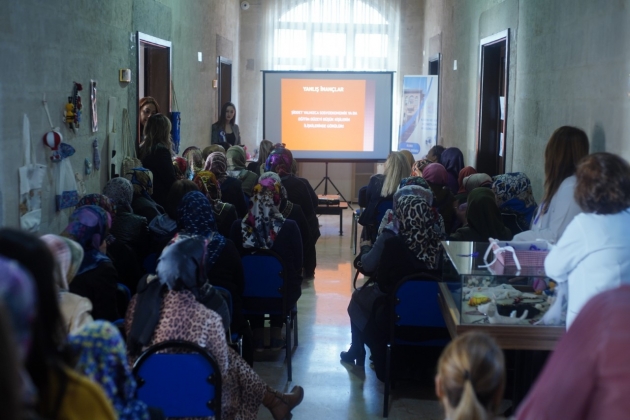 Etkinlik öncesinde Nevşehirli kadınlara, Kadın ve Aile Hizmetleri Müdürlüğü’nde, Aile Çalışma ve Sosyal Hizmetler Müdürlüğü Şiddet Önleme İzleme Merkezi Müdürü Şenay Atar ve Gençlik ve Spor Hizmetleri İl Müdürlüğü’nde görevli Psikolog İlayda Altun İçen tarafından, şiddete karşı yasal hakları ve mücadele yolları hakkında bilgiler verildi.