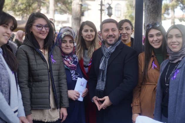Burada konuşan Belediye Başkanı Rasim Arı, “Doğumdan ölüme kadar hayatın her anında varlıklarını hissettiğimiz, bizi biz yapan değerli kadınlarımızın mutlu, sağlıklı ve sevgi dolu bir dünyada hiçbir şiddete maruz kalmadan yaşamalarını sağlamak, hepimizin en önemli görevidir. Çünkü bir ailenin sağlığı ve mutluluğu ile toplumun huzuru ancak kadınlarımızın saygı ve sevgi görmesiyle mümkündür.” dedi.