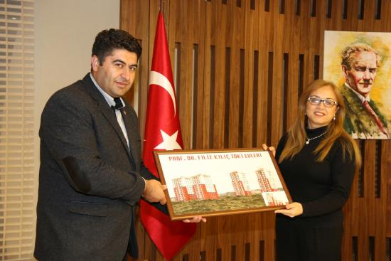 Üniversitemiz tarafından toplu konut projesi kapsamında akademik ve idari personel için toplu talep örgütlenmesi yoluyla ev sahibi olan site sakinleri adına Site Temsilciler Kurulu, Rektörümüz Prof. Dr. Filiz Kılıç’ı makamında ziyaret etti.
