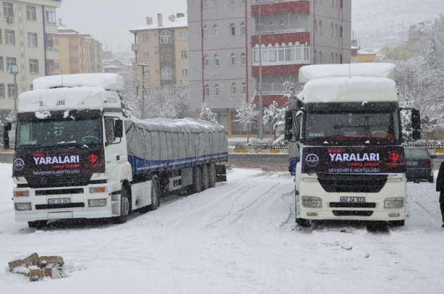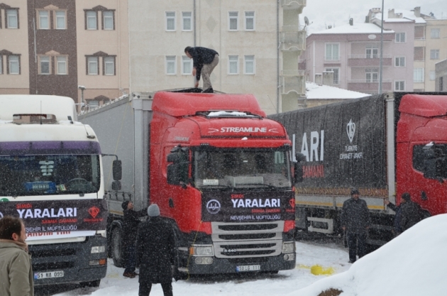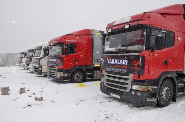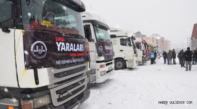 Törende Nevşehir İl Müftüsü Yakup Öztürk’ün yaptığı duanın ardından yardım tırları yola çıktı.