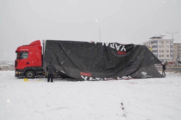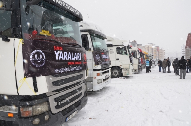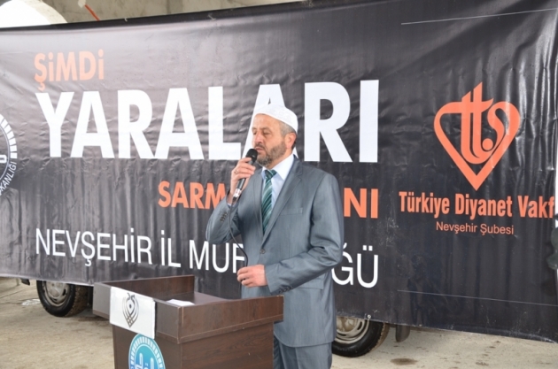 İl Müftülüğü ve Türkiye Diyanet Vakfı Nevşehir Şubesi nin organizasyonu ile Bayırbucak Türkmenleri ve Suriye Göçmenlerinin yararına "Şimdi Yaraları Sarma Zamanı" kampanyasında hayırsever Nevşehirlilerden toplanan 8 tırdan oluşan Patates ve Un dan oluşan ardım malzemelerinin yola çıkartılması nedeniyle tören düzenlendi.