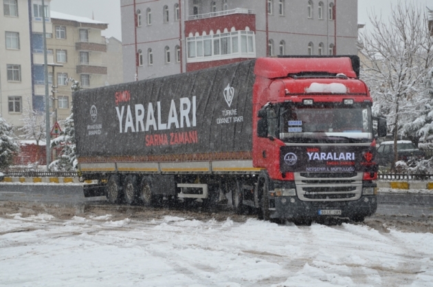 Merkez Taşlıbel Camii İmam Hatibi Ahmet Aydemir ve Fatih 2 Camii İmam Hatibi Hüsrev Öndegelen rehberlik etmek ve gıda maddelerini bizzat teslim etmek üzere gönüllü olarak tırlara refakat etmişlerdir.