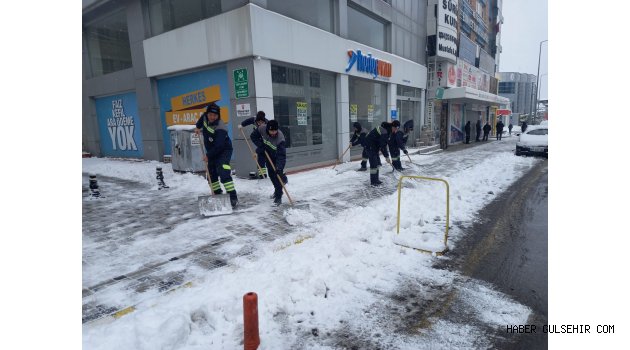 Temizlik İşleri Müdürlüğü ve Park ve Bahçeler Müdürlüğü ekipleri ise sabah erken saatlerden itibaren yaya kaldırımlarında kar temizliği çalışması gerçekleştirdi.