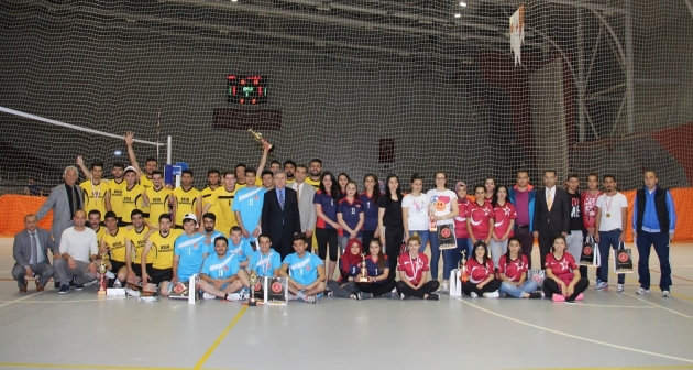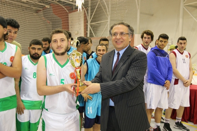 Üniversitemiz akademik ve idari personeli ile öğrencilerin katılımlarıyla; futbol, voleybol, masa tenisi, basketbol, tırmanış ve kort tenisi gibi spor dallarında düzenlenen karşılaşmalar sonunda dereceye giren takım ve ferdilere ödüllerini Rektörümüz Prof. Dr. Filiz Kılıç, Rektör Yardımcılarımız Prof. Dr. İlyas Gökhan ve Prof. Dr. H. Abdullah Şengül verdi.