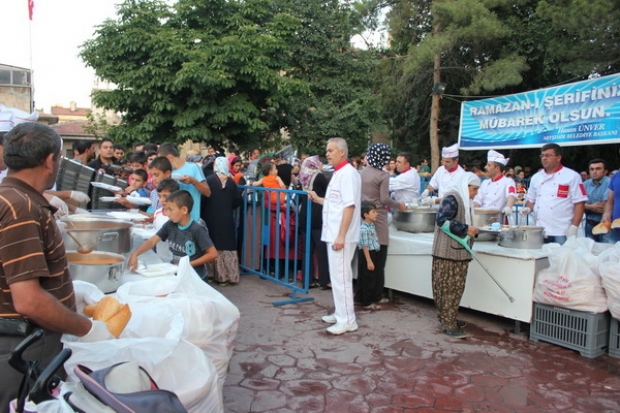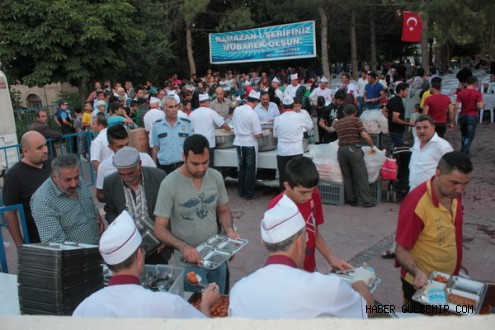 Ramazan ayı süresince her gün hayırsever işadamı ve ailelerin maddi katkıları ile gerçekleştirilen geleneksel İftar Sofrasında, damak tadına uygun olarak hazırlanan yemekler , 3 ayrı dağıtım birimi ile kısa sürede vatandaşlara dağıtılıyor.