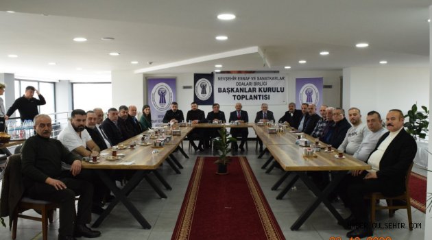 Nevşehir Esnaf ve Sanatkarlar Odaları Birliği 2022 yılı Başkanlar Kurulu Toplantısı 28 Aralık 2022 Çarşamba günü Birlik Başkanı Mehmet PINARBAŞI başkanlığında gerçekleştirildi.