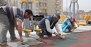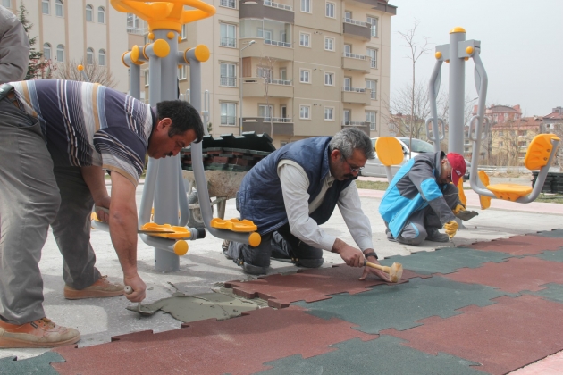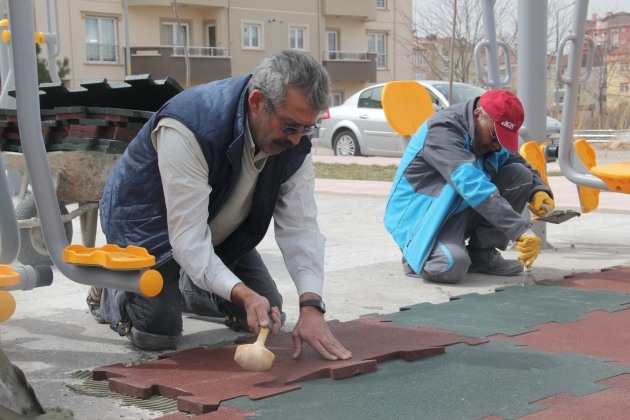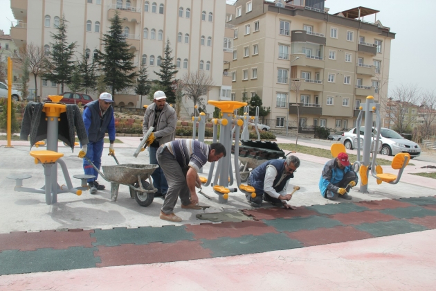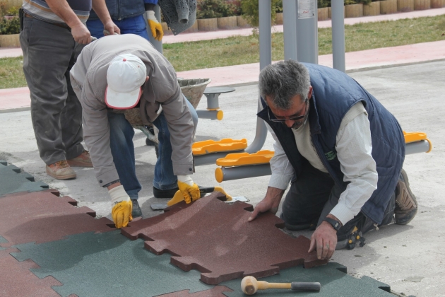 Nevşehir’in en modern şehir yapılanmasına sahip merkezlerin başında gelen Güzelyurt Mahallesi’ndeki dinlenme ve çocuk oyun parkında montajı tamamlanan oyun grubu ile Kondisyon alanlarının zemini kauçuk ile kaplanıyor.