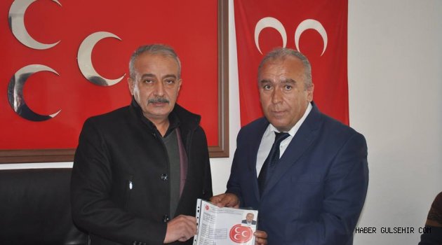 Gülşehir İlçe Esnaflarından Öz Bilgin Tuz Şti. nin sahibi Suat Bilgin Milliyetçi Hareket Partisinden Gülşehir Belediye Başkan Aday Adayı başvurusu yaparak dosyasını ilçe Başkanı Güray Çevirme'ye teslim etti.