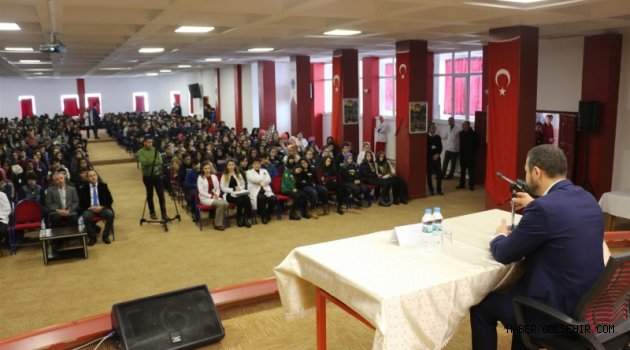 Konferans salonunda Lise öğrencilerine hitap eden Açıkgöz, öğrencilere iç ve dış siyaset,terör olayları,bölücü terör örgütlerinin çalışmaları,ülkemizin ve milletimizin tehlikelerle karşı karşıya kaldığı zamanlarda gösterdiği kahramanlıklar,yeni anayasa çalışmaları ve Başkanlık sistemi hakkında bilgiler verdi.
