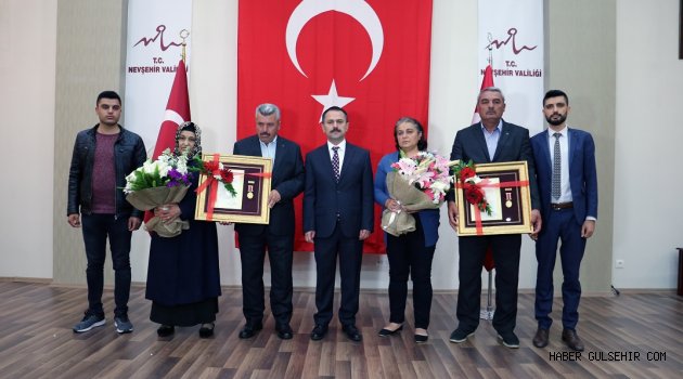 Vali İlhami Aktaş konuşmasında; “Çok kıymetli şehit ailelerimiz, annelerimiz, babalarımız, kardeşlerimiz hepinize katılımlarınızdan dolayı teşekkür ediyor, hoşgeldiniz diyorum. Bugün burada devletin şehitlerimize onların manevi huzurlarında şehit ailelerine verilen kıymetin bir göstergesi olarak bir araya gelmiş bulunuyoruz. Cumhurbaşkanımız Sayın Recep Tayyip Erdoğan’ın talimatlarıyla şu an kendisi de aynı dakikalarda Ankara’da bir gurup şehit ailelerine Devlet Övünç Madalyasını Tevcih etmekte. Bizde bugün bu töreni düzenlemek için burada bulunmaktayız. Devlet olarak, devletin bir görevlisi olarak, tüm şehit ailelerimizin çocukları, eşleri, kardeşleri, anne babaları bu devlet yaşadığı müddetçe bu devlette bizlere birer emanet olduğunu belirtmek istiyorum. Tüm çalışma arkadaşlarımızla beraber siz ailelerin her türlü sorunlarında, ihtiyaçlarında, problemlerinde yardımcı olmak, evlat acısını dindirmek hepimizin Vatan, millet, şeref ve namus borcudur. Bugün tüm Türkiye’de olduğu gibi Nevşehir’imiz dede böyle olduğunun bilmenizi ister, tekrar katılımınızdan dolayı teşekkür eder, şehitlerimize Allah’tan rahmet, siz yakınlarına sabırlar diler, hayırlı ramazanlar geçirmenizi temenni ederim. Devletimizin ve milletimizin bir vefa sembolü olarak sizlere takdim edeceğimiz madalya ve beratın nesilden nesile gururla, kıvançla aktarılmasını temenni ediyorum” dedi.