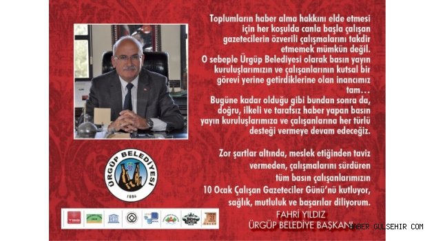 Ürgüp Belediye Başkanı Fahri Yıldız, 10 Ocak Çalışan Gazeteciler Günü dolayısıyla bir mesaj yayımladı.
