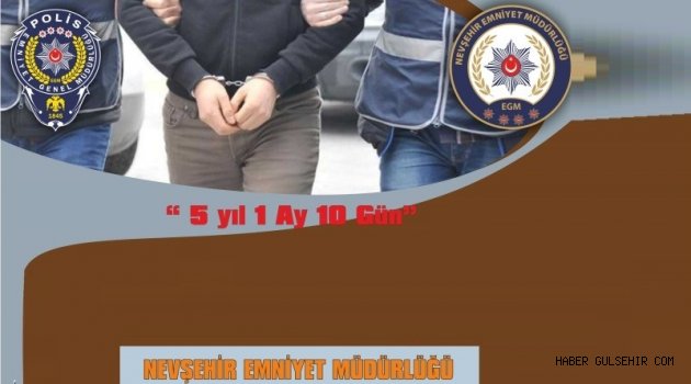 “6136 Sayılı  Ateşli Silahlar Ve Bıçaklar İle Diğer Aletler Hakkında Kanun Muhalefet ve Yaralama “ suçlarından aranan ve hakkında “ 5 yıl 1 Ay 10 Gün” hapis cezası bulunan M.A.(23) yakalanarak İlimiz Cumhuriyet Savcılığına sevk edilmiş TUTUKLANARAK Nevşehir E-Tipi Kapalı Cezaevine teslim edilmiştir.''denildi.