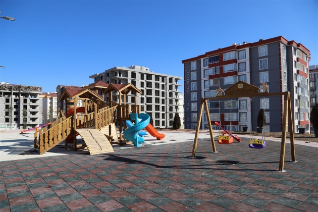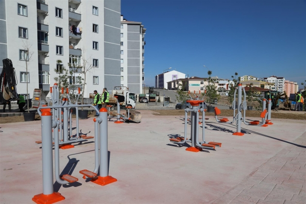 Cevher Dudayev Mahallesi Öner Sokak üzerinde oluşturulan park alanının düzenleme çalışmaları kapsamında çocuk oyun grubunun montaj işlemlerinin ardından, zemininin de kauçuk ile kaplanması gerçekleştiriliyor.