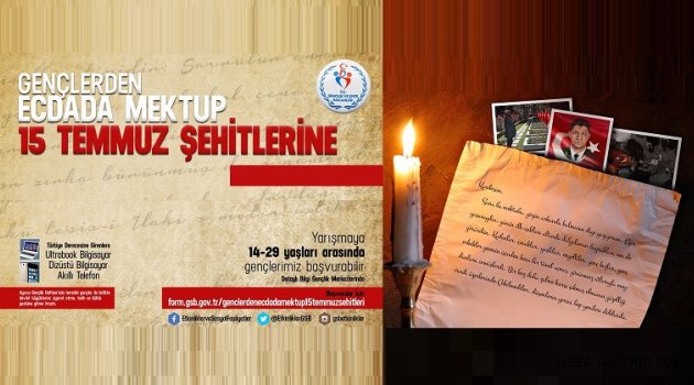 Gençlik ve Spor Bakanlığı, Gençlik Hizmetleri Genel Müdürlüğüne bağlı Etkinlikler ve Sosyal Faaliyetler Daire Başkanlığınca yürütülen "Gençlerden Ecdada Mektup Yarışması" 3. Yılında 15 Temmuz Şehitlerine mektup yarışması temasıyla devam ediyor.