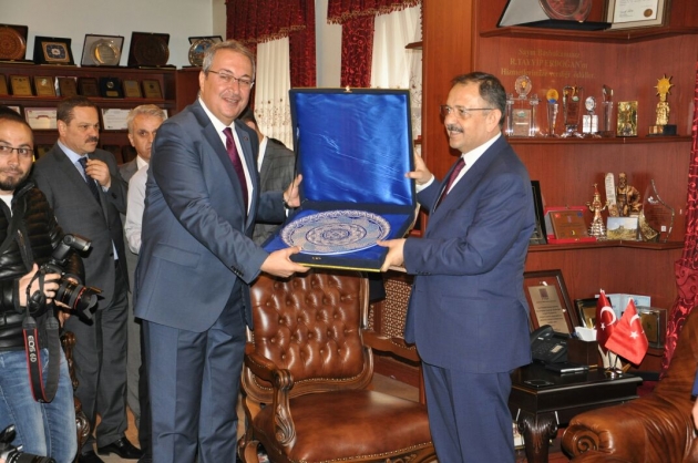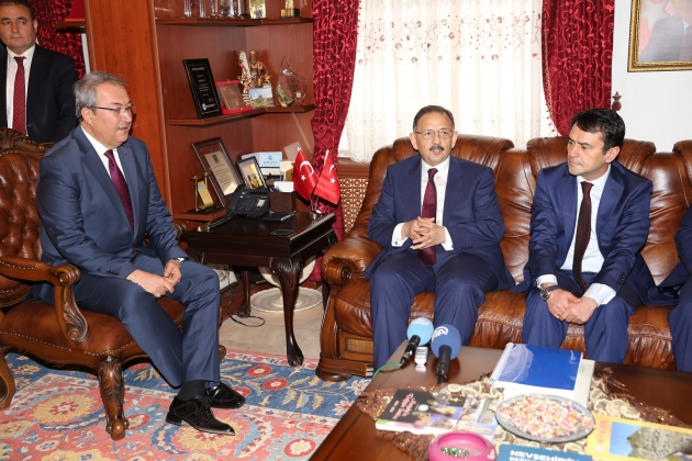 Çevre ve Şehircilik Bakanı Mehmet Özhaseki, referandum çalışmaları kapsamında geldiği Nevşehir’de, Belediye Başkanı Hasan Ünver’i makamında ziyaret ederek bir süre görüştü.