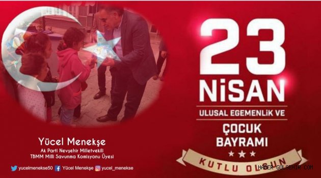 AK Parti Nevşehir Milletvekili ve TBMM Milli Savunma Komisyonu Üyesi Yücel Menekşe, 23 Nisan Ulusal Egemenlik ve Çocuk Bayramı dolayısıyla kutlama mesaj yayımladı.