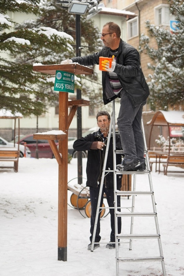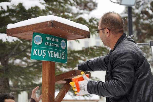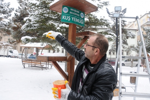 Nevşehir ’de  bir süredir etkili olan elverişsiz hava şartları nedeniyle yem bulmakta zorlanan kuşlar için  kuş yemliklerine Nevşehir Belediyesi ekipleri tarafından yem bırakıldı.