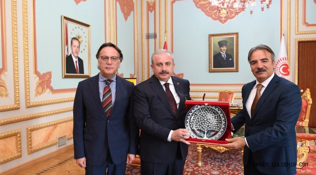 Türkiye Büyük Millet Meclisi (TBMM) Başkanı Mustafa Şentop, Nevşehir Hacı Bektaş Veli Üniversitesi (NEVÜ) Rektörü Prof. Dr. Mazhar Bağlı'yı makamında kabul etti.