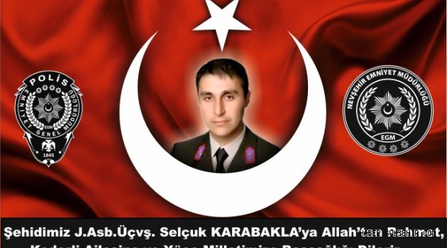 Nevşehir İl Emniyet Müdürlüğü Mardin Nusaybin ilçesi'nde terörist unsurlar ile Güvenlik güçleri arasında yaşanan çatışmada Şehit olan Derinkuyulu Astsubay Selçuk Karabakla'nın şehadete erişmesi nedeniyle Taziye mesajı yayınladı.