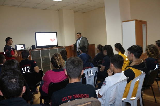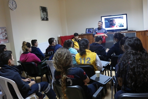 Eğitimde geleceğin UMKE adayları olan Nevşehir İbn- i Sina Mesleki ve Teknik Anadolu Lisesi Acil Tıp Teknisyenliği (A.T.T.) bölümü 4. sınıf öğrencilerine, Temel Yaşam Desteği, Hasta ve Yaralı Taşıma Teknikleri, Crush Sendromu, Kompartıman Sendromu konuları ile Nevşehir UMKE’nin kuruluşundan bugüne gerçekleştirmiş olduğu yurt içi ve yurt dışı görevler ve çalışmaları hakkında eşliğinde bilgiler verildi.