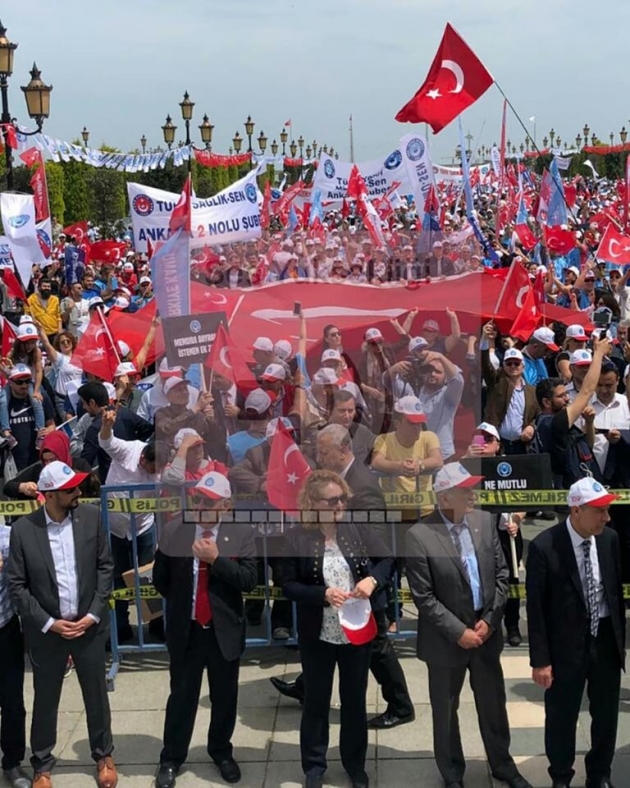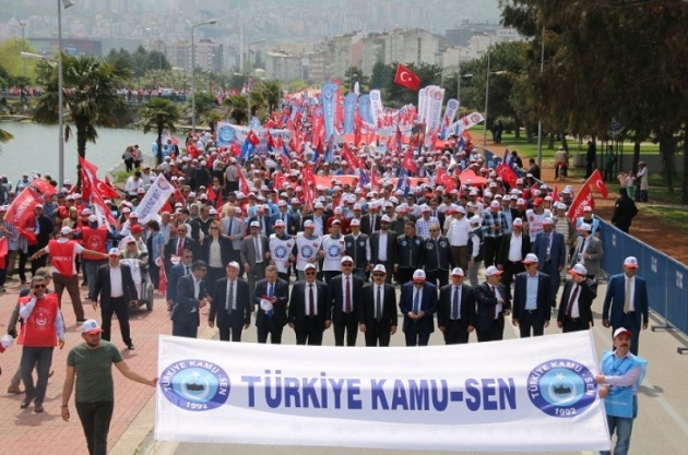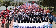 “1919’dan 2019’a Milli Mücadelenin 100. Yılında Samsun’dayız” sloganı ile yola çıkan Türkiye Kamu-Sen, 1 Mayıs Emek ve Dayanışma Gününde Samsun’da düzenlediği muhteşem mitingle Emek ve Dayanışma Gününü adına yakışır bir şekilde kutladı. Türkiye’nin dört bir yanından Samsun’a akın eden Türkiye Kamu-Sen üyeleri Milli Mücadelenin başladığı kent olan Samsun’da coşkuyla karşılandılar. Büyük Önder Gazi Mustafa Kemal Atatürk’ün Samsun’a ilk ayak bastığı yer olan Kurtuluş Bulvarı Meydanında yapılacak olan miting öncesi yürüyüş korteji oluşturan, Türkiye Kamu-Sen’e gönül vermiş on binlerce kişi Samsun caddelerini kırmızı beyaza boyadı. Yürüyüş güzergahında atılan sloganlara Samsun’lu vatandaşlar da alkışlarla destek verdi. Kurtuluş Bulvarı Meydanında toplanan on binlerce kamu çalışanı ve vatandaş, saygı duruşu ve İstiklal Marşı’nın ardından, aziz vatanımız için şehadet şerbeti içen şehitlerimiz ve milli mücadele meşalesini yakan Gazi Mustafa Kemal Atatürk ve silah arkadaşları için dualar etti. Davul Zurna ve sanatçıların seslendirdiği müzikler eşliğinde bir kutlama ve sorunları dile getirme mitingine dönüşen 1 Mayıs buluşmasında Türkiye Kamu Sen Başkanı Önder Kahveci bir konuşma gerçekleştirdi. Konuşmanın sonunda meydandaki kalabalık hep bir ağızdan Andımızı okudular.