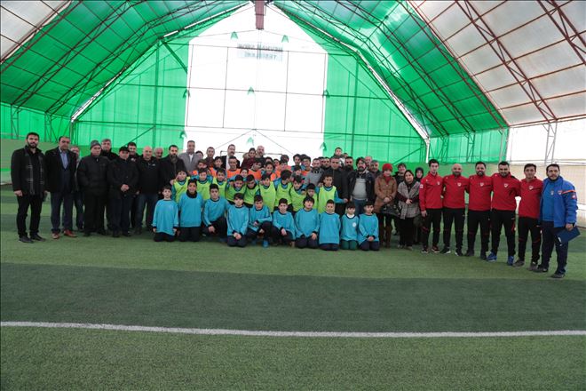 Futbol okuluna kayıt yaptıran çocuklara eşofman ve forma dağıtımı yapıldıktan sonra açılış nedeniyle pasta kesildi.