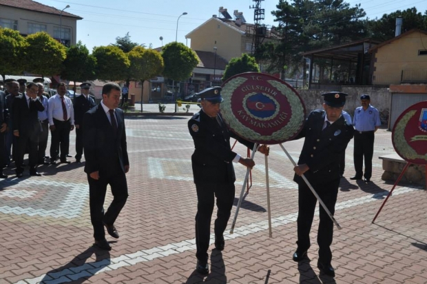 Hükümet Konağı Önünde Saat 10:30 da Saygı Duruşu ve İstiklal Marşı ile Başlayan Proğram, Atatürk Anıtına Gülşehir Kaymakamı yerine vekalet eden Avanos Kaymakamı Mustafa Eldivan , Gülşehir Garnizon Komutanı Ömer Onur Beşiktaş ve Gülşehir Belediye Başkanı Vahdi Arısoy'un çelenk Koymalarıyla Devam Etti.