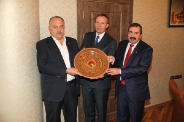 Litvanya ve Türkiye arasındaki ilişkileri artırmak amacıyla Kapadokya’yı ziyaret eden Litvanya Büyükelçisi Audrius Bruzga ekonomik işbirliğine yönelik görüş alışverişinde bulunmak üzere Nevşehir Ticaret ve Sanayi Odası’nı ziyaret ederek NTSO Yönetimi ile bir araya geldi.