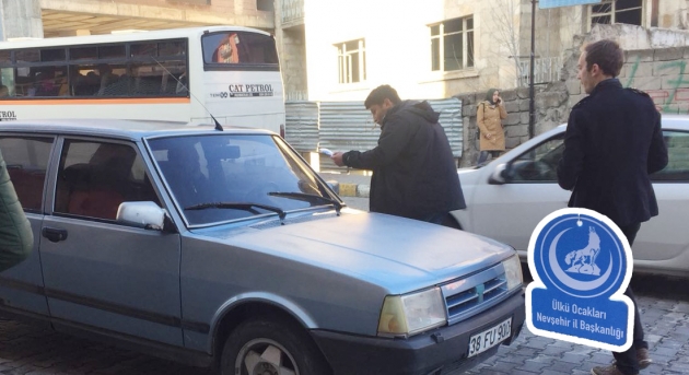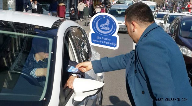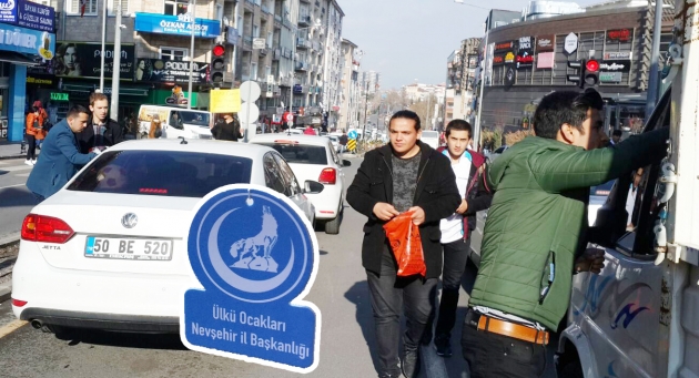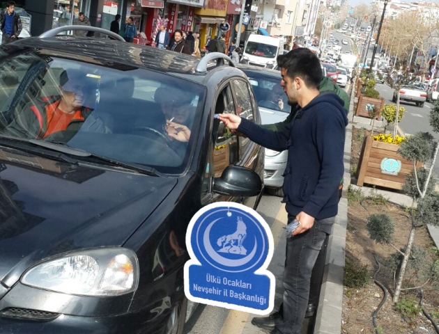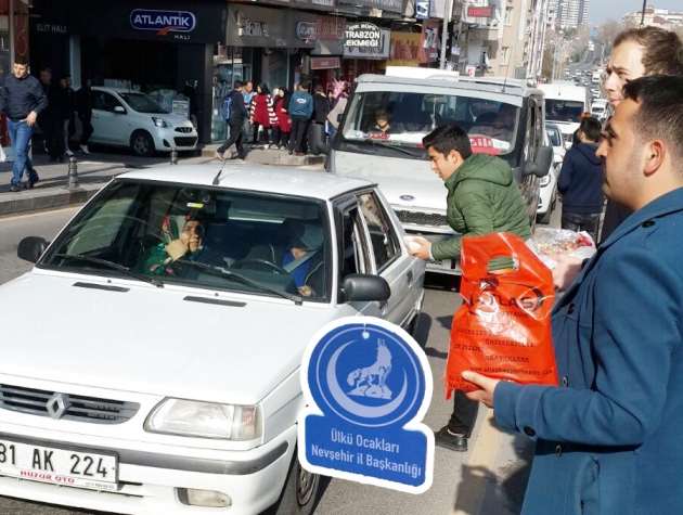 Ülkü Ocakları Nevşehir İl Başkanlığı bünyesinde ki gençler, Nevşehir’in en işlek caddelerinde emniyet kemeri takan sürücülere şeker ve araç kokusu hediye ettiler. Milli İrade Caddesi, Lale Caddesi ve Hükümet konağı ön kısmında ki trafik ışıkların da, bu anlamlı çalışmayı yapan Ülkücü gençler, büyük ilgi ile karşılandı. Karşısında “Ülkü Ocakları Türk Milletinin Emniyet Kemeridir” yazısını ve hediye ile yaklaşan gençleri görünce kısa süreli şaşkınlık yaşayan sürücüler, güzel bir çalışmaya imza atıldığını belirttiler.