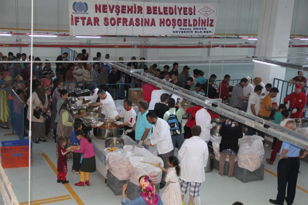 Ramazan ayı süresince yoğun iş temposu nedeniyle evde yakınları ile iftarı yapamayacak durumda olan vatandaşların yanı sıra dar gelirlilerin nezih bir aile ortamında, Ramazan ayının özelliğine uygun bir şekilde iftarlarını yapabilmelerine imkan sağlanması amacıyla Nevşehir Belediyesi, geleneksel hale getirdiği iftar sofrası için hazırlıklarını sürdürüyor.
