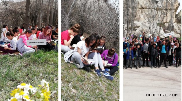 Göreme Ortaokulu, Kütüphaneler Haftası kapsamında “Okumanın yeri ve zamanı yoktur” sloganıyla Zemi Vadisi’nde kitap okuma etkinliği düzenledi.
