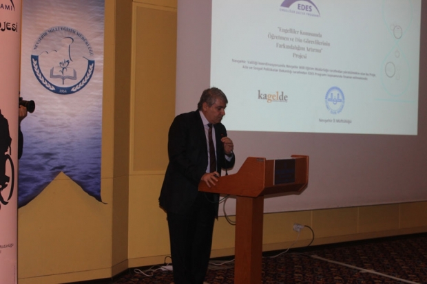 2014 Engelli Destek Programı (EDES) kapsamında Aile ve Sosyal Politikalar Bakanlığı’na sunduğumuz “Engelliler Konusunda Öğretmen ve Din Görevlilerinin Farkındalığını Artırma” isimli projemizin açılış toplantısı, İl Müftümüz Yakup Öztürk Milli Eğitim Müdürümüz Osman Şimşek, Kapadokya Gelişim Derneği Başkan Yardımcısı Bilal Altunbaş, ilgili Sivil Toplum Kuruluşlarının Temsilcileri ve halkın katılımıyla Kapadokya Dedeman Otelde gerçekleşti.