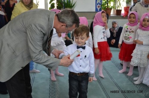 Program sonunda miniklere katılım belgelerini Müftü Yardımcısı Yaşar Bolat takdim ederken, Taşlıbel Camii İmam Hatibi Ahmet Aydemir’ de bütün öğrencilere kol saati hediye etti. Çekilen toplu hatıra fotoğrafı ile program sona erdi.