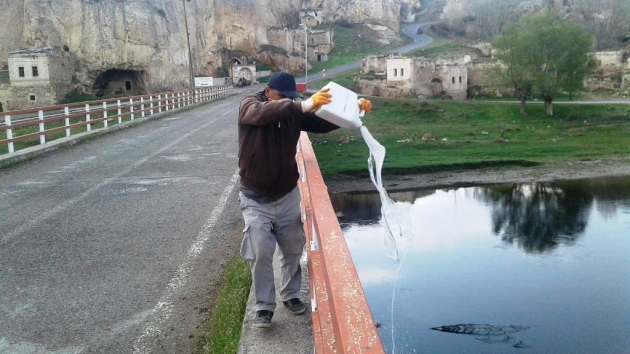 Avanos Belediyesi Temizlik ve Çevre Koruma Müdürlüğü'nün ilaçlama ekipleri, Kızılırmak üzerindeki köprülerden ırmak içine sinek oluşumuna karşı larvasit ilaçlaması yapıyor. Temizlik ve Çevre Koruma Müdürlüğü yetkilileri, hava sıcaklıklarının artmasıyla birlikte ilaçlama çalışmalarının da hızlandırılacağını söyledi. Avanos Belediye Başkanı Celal Alper İbaş ‘’ Avanos’un ihtiyaçlarına yönelik çalışmaları aksatmadan yürütüyoruz, sinek ilaçlama çalışmalarını hızlandırdık özellikle sivrisinek ilaçlamalarına hız verdik. Bu çalışmalarımız yeni değil bir kaç aydan beri sürüyor. Amacımız halkımızın rahat bir yaz sezonu geçirmesini sağlamak’’ dedi.