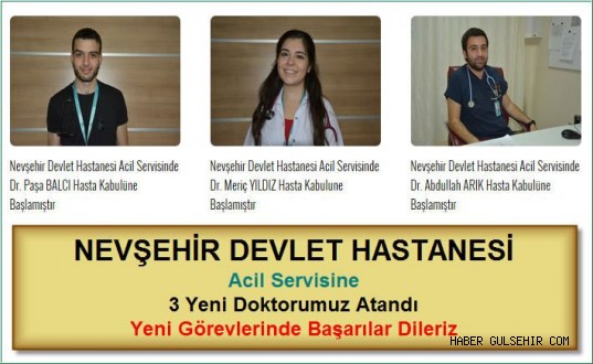Nevşehir Devlet Hastanesi Acil Servis bölümüne 3 Yeni Doktor Ataması yapıldı.