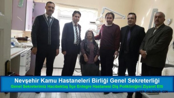 Nevşehir İli Kamu Hastaneleri Birliği Genel Sekreteri Uzm. Dr. Muhammet Çömçe, İdari Hizmetler Başkanı Mehmet Gizligider  ve Nevşehir Ağız ve Diş Sağlığı Merkrezi Başhekimi Dt. Murat Alp ile birlikte Hacıbektaş İlçe Entegre Hastanesi Diş Polikliniğini ziyaret ederek incelemede bulundular. Görevli Diş Hekimi Dt. Hüseyin Aksoy’dan  poliklinik hakkında bilgi  aldılar.