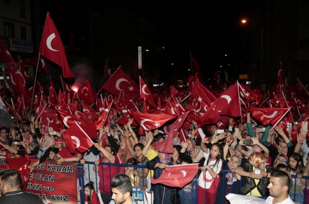 Yaşanan darbe girişiminin ardından milletin bir ve beraber olarak tepkisini günlerdir meydanlarda verdiğini kaydeden Yıldızdoğan, "Bu millet ne yaptı? Bir oldu, beraber oldu. Onun için başta Cumhurbaşkanımız sayın   Recep Tayyip Erdoğan’a canı gönülden teşekkür ediyorum. Başbakanımız sayın Binali Yıldırım’a dik durduklarından dolayı teşekkür ediyorum. Ama demeden, fakat demeden, çünkü demeden darbeye karşı olduğunu ve hükümetin yanında olduğunu ortaya koyan MHP Genel Başkanı sayın Devlet Bahçeli’ye canı gönülden teşekkür ediyorum. Darbeye karşı olduğunu açıkça ifade eden CHP Genel  Başkanı  sayın Kemal Kılıçdaroğlu ’na teşekkür ediyorum. ve en güzel teşekkürü eline bayrağı alıp tankın karşısına geçen, milli mücadelede olduğu gibi Nene Hatunlarımız, Şerife Analarımız yani hanımefendilerimiz, analarımız, bacılarımız en güzel teşekkür size ait.  Sütçü İmam  olup düşmanın karşısına gerilen bütün beyefendilere ,canı gönülden teşekkür ediyorum. Yüce Türk milletine teşekkür ediyorum. " ifadelerini kullandı.