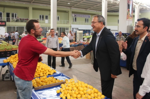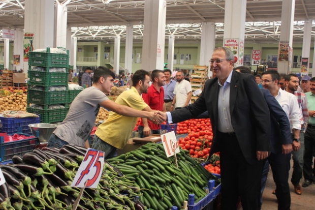 10 Ağustos’ta gerçekleştirilecek Cumhurbaşkanlığı seçimi öncesinde Nevşehir Belediye Başkanı Hasan Ünver, AK Parti Nevşehir İl Teşkilatı yöneticileri ile birlikte Modern Pazar Yeri ile Organik Ürünler ve Köylü Pazarı’nı ziyaret ederek, pazar esnafları ile vatandaşlardan Cumhurbaşkanı adayı ve Başbakan Recep Tayyip Erdoğan için destek istedi.