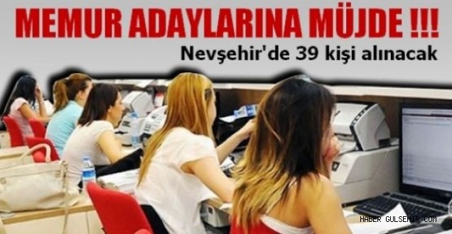 Devlet Personel Başkanlığı tarafından 2014/1 Memur alım sayıları açıklandı. Buna göreNevşehir‘de bulunan kamu kurumlarına 39 memur alınacak. Alınacak memurların 19'u lisans, 10'u önlisans, kaln 10 kişilik kontenjan ise ortaöğretim mezunu adaylar arasından olacak.