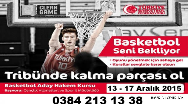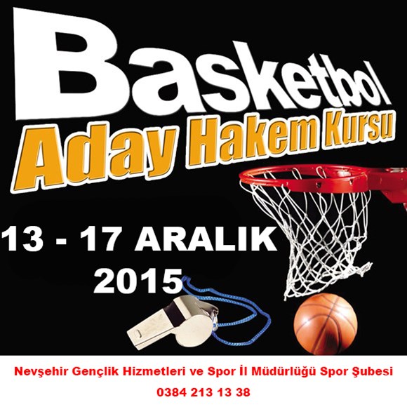 Basketbol il temsilciliği tarafından açılacak olan Aday Hakem kursu için Nevşehir Gençlik Hizmetleri Ve Spor İl Müdürlüğü Spor Şube Müdürlüğüne 12 Aralık 2015 saat 17.00'a kadar müracat etmeniz gerekmektedir.