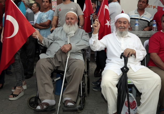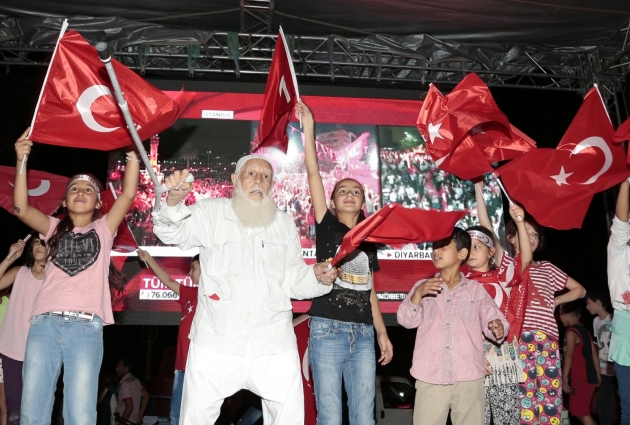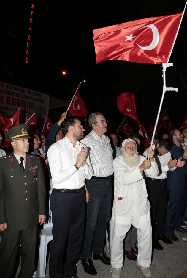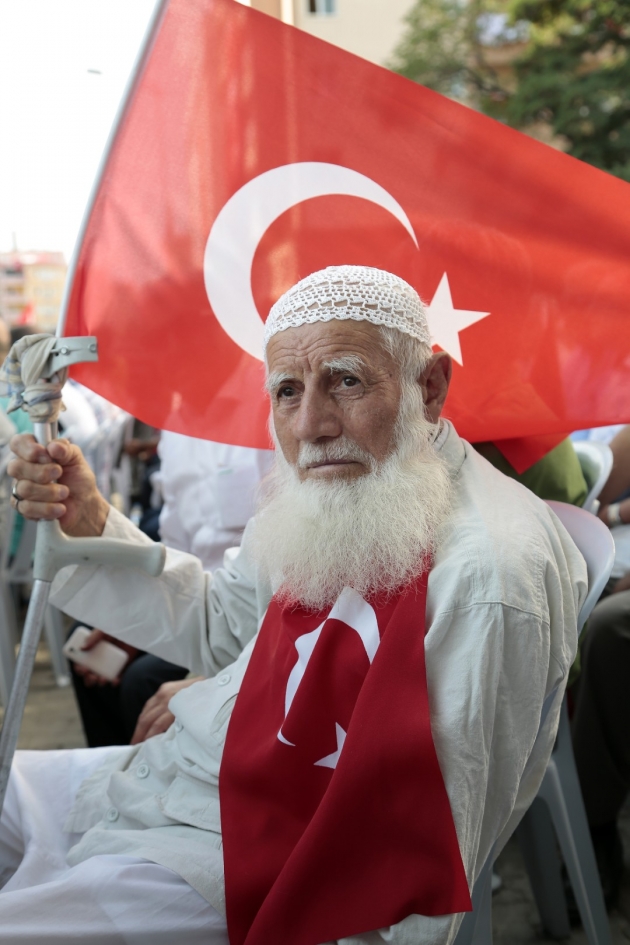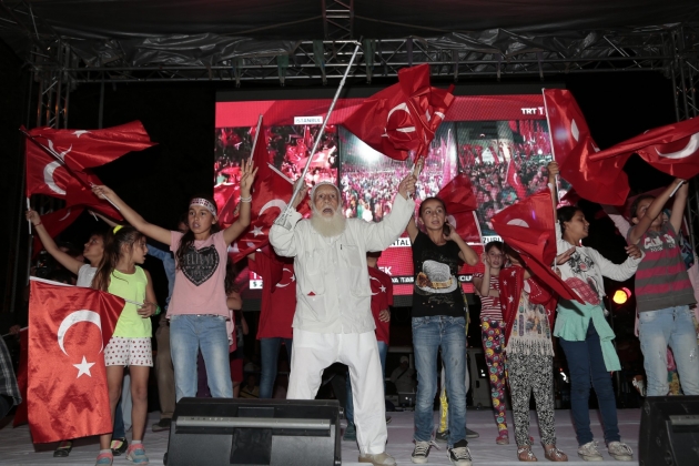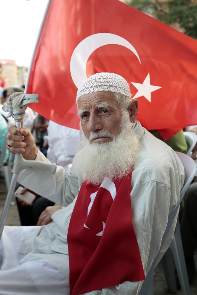 Nevşehir Belediyesi ekipleri tarafından havai fişek gösterileri yapılırken, koltuk değnekleri ile yürüyebilen 81 yaşındaki Yusuf Demirci isimli dede, Türk Bayrağı ile dakikalarca halkı selamladı. Bu arada çevresine toplanan çocuklarda yine Türk bayrakları ile birlikte Yusuf Demirci isimli dedeye destek verdi.