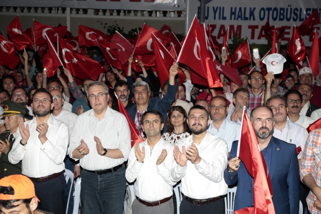 Daha sonra Cumhurbaşkanı ve Başkomutan Recep Tayyip Erdoğan’ın himayelerinde AK Parti Genel Başkanı ve Başbakan Binali Yıldırım, TBMM Başkanı İsmail Kahraman, CHP Genel Başkanı Kemal Kılıçdaroğlu, MHP Genel Başkanı Devlet Bahçeli ve Genel Kurmay Başkanı Hulusi Akar’ın yanı sıra Kuvvet Komutanlarının da katıldığı İstanbul Yenikapı’da ,Demokrasi Nöbetlerinin taçlandırıldığı Demokrasi ve Şehitler Mitingi ,Diriliş Meydanı’nda kurulan platformdaki Barkovizyondan vatandaşlara da izlettirildi.