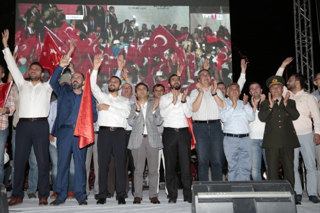 Nevşehir Valisi İlhami Aktaş, AK Parti Nevşehir Milletvekilleri; Mustafa Açıkgöz,Murat Göktürk, Ebubekir Gizligider, İl Jandarma Komutanı Jandarma Kıdemli Albay Metin Alkaya, İl Emniyet Müdürü Metin Kalayoğlu, AK Parti İl Başkanı Mehmet Ali Tanrıver, İstanbul Yenikapı’daki Demokrasi ve Şehitler Mitinginin ardından ,Diriliş Meydanı ‘nda kurulan platforma çıkarak halkı selamladılar.