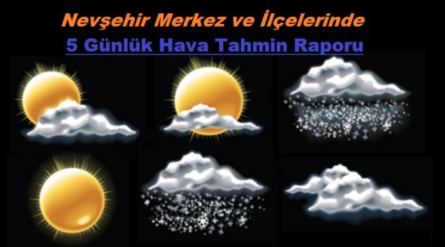 Meteoroloji İşleri Genel Müdürlüğü'nden alınan bilgilere göre Nevşehir Merkez, ve ilçelerinde önümüzdeki 5 Günlük süreçte Hava durumu şu şekilde olması Bekleniyor.
