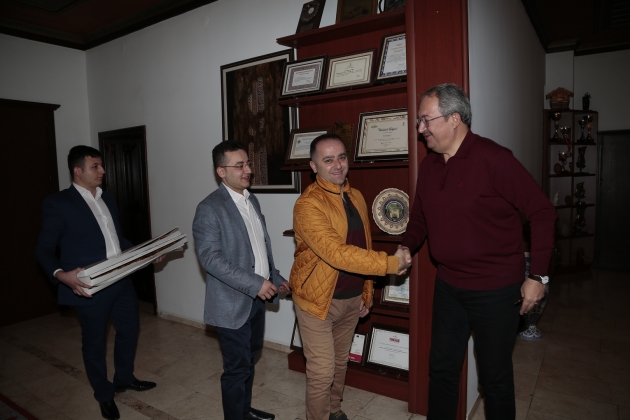 Geçtiğimiz günlerde gerçekleştirilen Genel Kurul ile Nevşehir Fırıncılar Odası başkanlığına seçilen Mustafa Dipici ,yönetim kurulu üyeleri ile birlikte Belediye Başkanı Hasan Ünver’e nezaket ziyaretinde bulundu.
