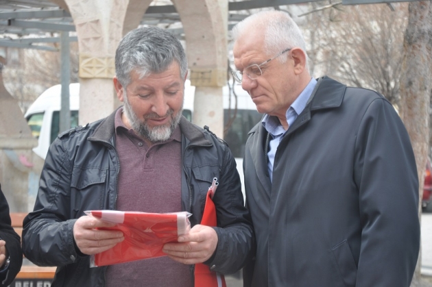 Göreme Belediyesi, Afrin’deki ‘Zeytin Dalı’ operasyonuna katılan Mehmetçiğe destek olmak ve birlik beraberliğe vurgu yapmak amacıyla esnafa Türk Bayrağı dağıttı.
